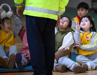 去年汛期巡逻的时候,巡逻队及时转移牧民和牲畜,使2000余只绵羊免受泥石流和山体滑坡的伤害。这些点滴的好人好事,让巡逻队成为当地牧民"最亲近的人"。图为2018年9月9日,巡逻队为游客指路。(袁欢欢摄/光明图片)
