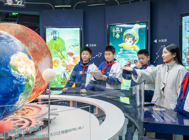 3月28日,“辉煌中轴”展览在北京的首都博物馆开展。2023年是北京建都870周年,展览共分为壮美中轴、文化中轴、永恒中轴三个部分,展出来自故宫博物院、西安博物院、浙江省博物馆等17家单位的53组(件)文物,彰显古都北京作为历史文化名城的独特魅力。图为观众在"辉煌中轴"展上观看中轴线沙盘。(陈晓根摄/光明图片)