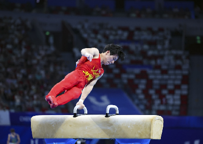 光明网讯 2023年8月4日,中国选手张博恒在成都大运会男子体操个人全能决赛中揽获金牌。这是继男子团体金牌、女子团体金牌之后,中国体操队在本届大运会上拿到的第三枚金牌。(潘迪)