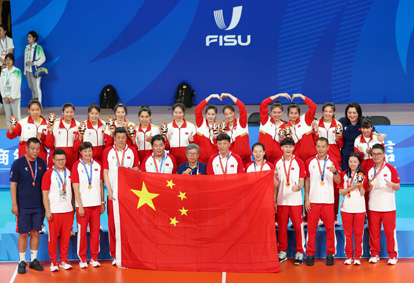 光明网讯 2023年8月6日晚,成都大运会女排决赛在西南交通大学犀浦校区进行,中国队以3比0完胜日本队,夺得冠军。这也是中国女排在世界大学生运动会历史上第七次夺冠。(潘迪)
