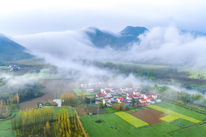 2024年1月26日,内蒙古赤峰市喀喇沁旗马鞍山村,冬雪覆盖下的村庄和田野银装素裹、静美壮观、宛如图画。近年来,马鞍山村践行“绿水青山就是金山银山”理念,实现了山林绿、产业兴、乡村美、百姓富。(王正摄/光明图片)