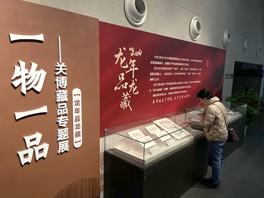 2024年2月8日,北京,中国海关博物馆游客在参观大龙邮票。(赵金悦摄/光明图片)