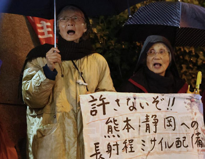 日本多地民众抗议政府强行部署远程导弹