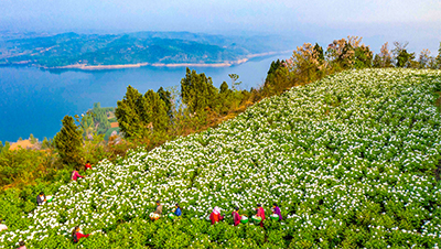 2025年1月27日,雪后初霁的安徽省黄山风景区风光旖旎,奇松怪石银装素裹,民俗舞龙在雪山之巅火热上演,吸引众多游客围观互动,喜迎新春。(施亚磊摄/光明图片)