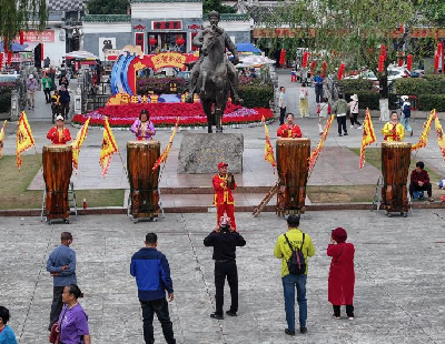2025年2月3日,农历正月初六,甘肃省天水市秦州区举办"欢乐秦州年"首届文化旅游活动周活动。现场气氛热烈,精彩纷呈的社火表演,吸引了众多市民和游客驻足观看。图为社火队表演吸引市民游客拍照留念。(陈坤摄/光明图片)