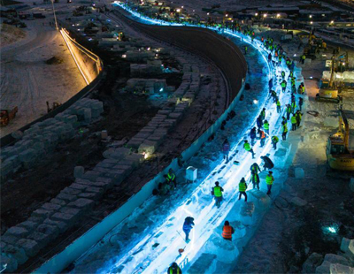 哈尔滨冰雪大世界超级冰滑梯火热建设中