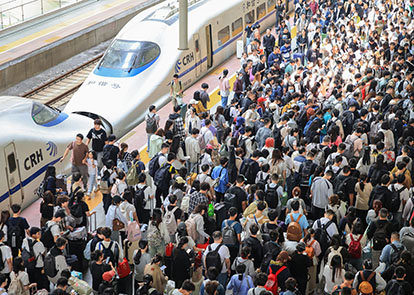 2025年10月8日,旅客在安徽省合肥火车站进站乘车。(熊伟摄/光明图片)