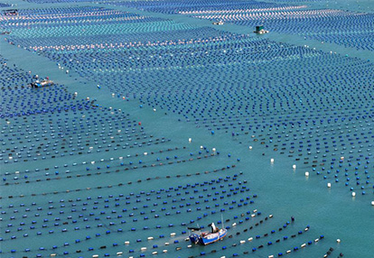 2025年10月18日,福建福州连江县筱埕镇海域的海洋牧场,呈现出一派秋日海上耕作的繁忙景象。(王旺旺摄/光明图片)