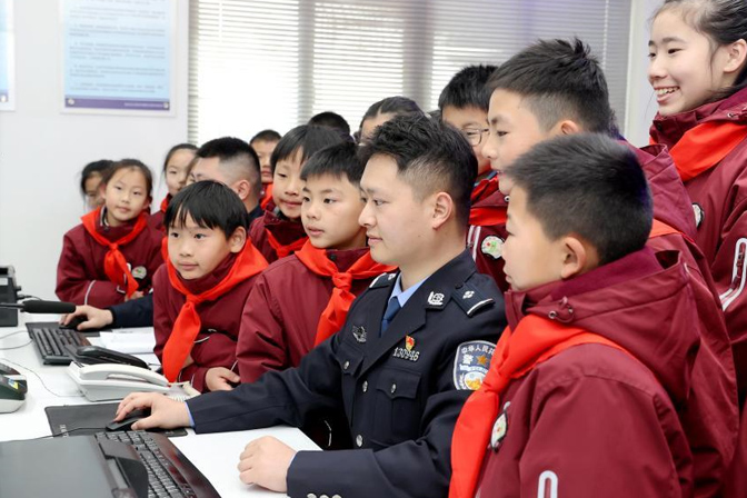 2026年1月9日,江苏省宿迁市公安局洋河新区分局洋河派出所举办警营开放日活动。学生们走进综合指挥室,零距离感受警营生活,体验别样‘警’彩。(王力摄/光明图片)
