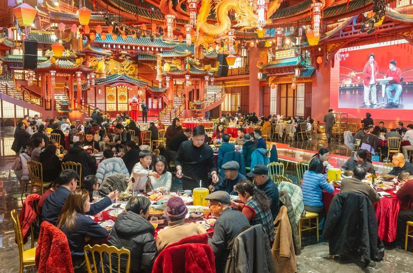 2026年2月16日,安徽合肥市蜀山区小庙镇鸿福宴大酒店,顾客们在吃团圆饭。(方好摄/光明图片)